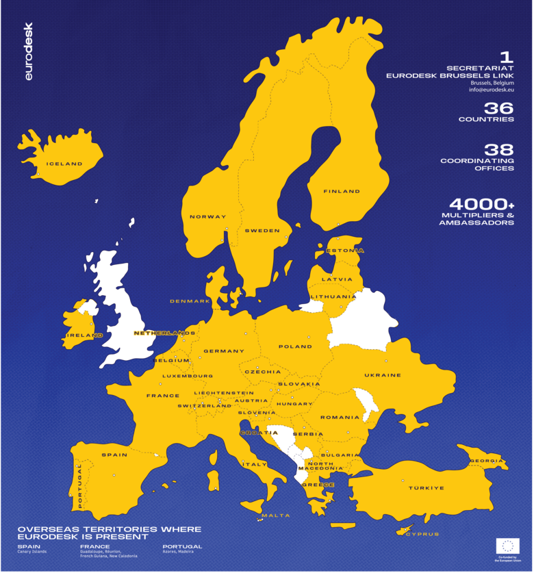 Eurodesk ir Eiropas jaunatnes informācijas tīkls, kas sniedz uzticamu informāciju un konsultācijas par mobilitātes iespējām Eiropā un veicina jauniešu pilsonisko līdzdalību. 2025.gadā Eurodesk atzīmē 35 darbības gadus.